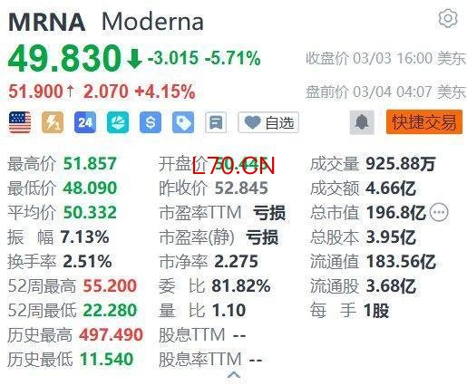 Moderna(MRNA.US)盘前涨4.15%,报51.9美元。消息面上,Moderna表示同意支付9.5亿美元,以和解与Arbutus Biopharma和Genevant Sciences就该公司现有和未来疫苗在全球范围内的所有诉讼,并且不再支付任何未来的特许权使用费。公司又称美股资讯服务平台,如果联邦巡回上诉法院确认其责任美股资讯服务平台,将在90日内额外支付最多13亿美元。随着专利阴云逐渐消退,以及与OpenAI深度合作的Moderna试图将AI深度嵌入mRNA药物研发与运营体系的增长叙事主线,市场正在将“mRNA平台+前沿AI能力”定价成Moderna下一阶段股价主升浪的核心催化剂。(格隆汇)